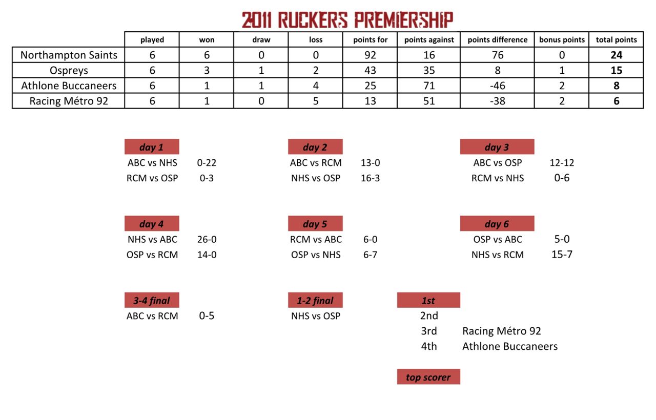 GENERAL STANDINGS (after Ruckers Premiership 2011)