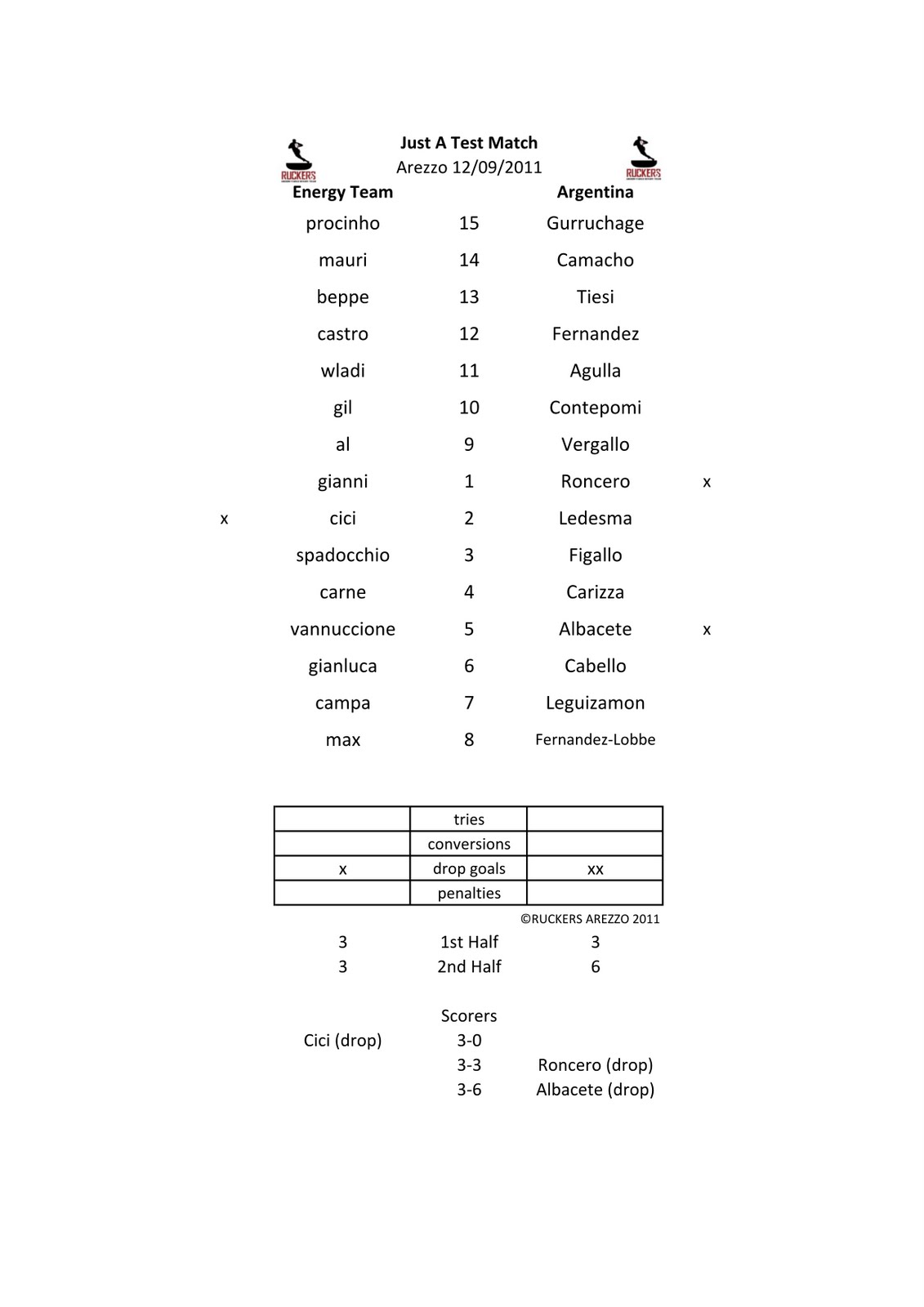 Le schermaglie rossonere costringono l'Energy Team a commettere l'errore sui propri cinque metri: fallo su un trequarti francese lanciato in meta. Meta tecnica e facile conversione di Wilko.